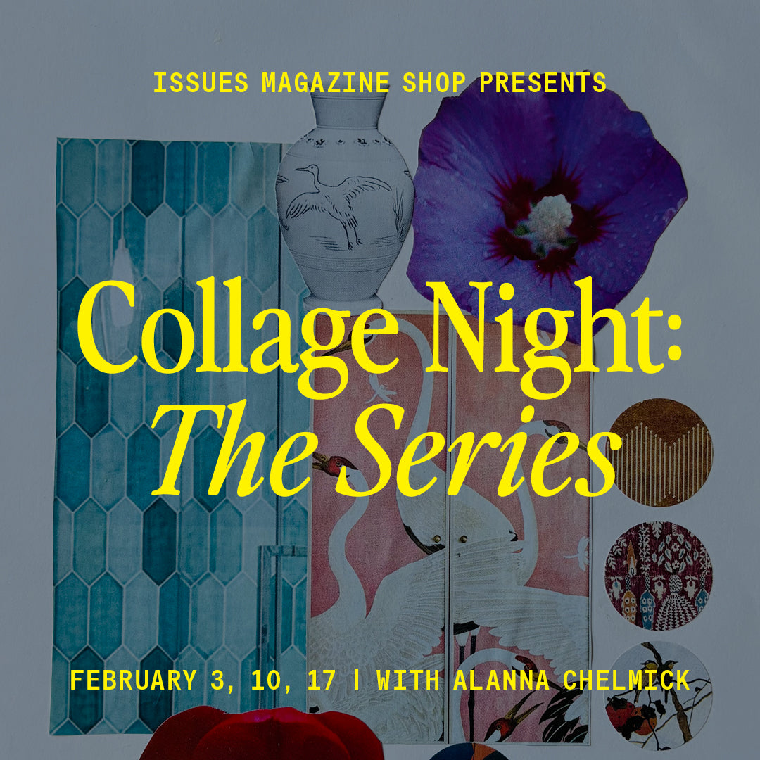 We're contractually obligated to recycle some of our titles after their off-sale date. Sending so much paper to the bin hurt our hearts, so we launched a series of collage workshops and the rest is history. Toronto Life once told their readers that "artists and crafters in the know come to Issues for the two-hour collage workshops" and we'd tend to agree.